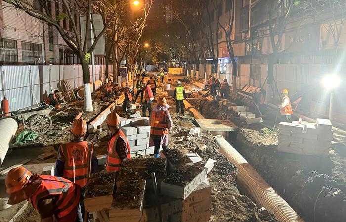 連日來,施工現(xiàn)場燈火通明,機(jī)械轟鳴,現(xiàn)場一派熱火朝天繁忙景象。工人們緊張忙碌著,充分利用夜間時(shí)間進(jìn)行污水管網(wǎng)工程溝槽開挖、管道安裝、回填,并同步進(jìn)行路緣石、平緣石的安裝等工作。一切工作緊鑼密鼓而又井然有序……