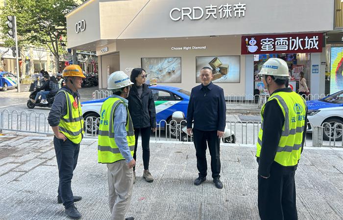 孫智文認真聽取了項目施工進展情況工作匯報,并到端仕街、威遠街、慶云街查看施工現(xiàn)場,對項目部安全文明施工、人員組織、質(zhì)量把控等工作進行現(xiàn)場指導。