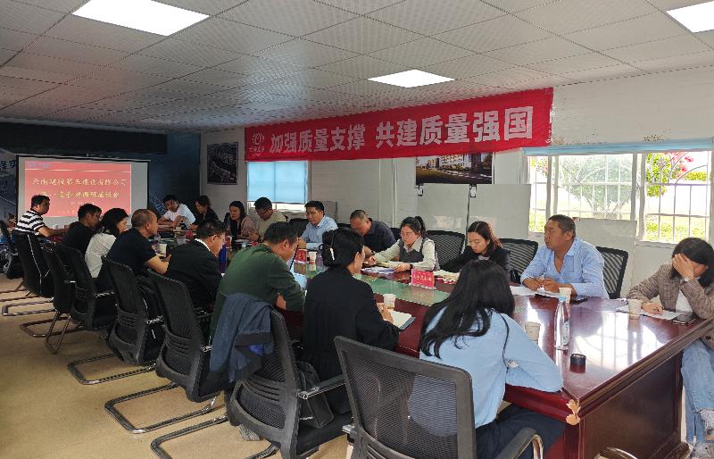 4月17日,公司黨委副書記、副董事長、總經理付雋蒼,總經濟師呂榮偉一行調研第一直管部,實地檢查直管部在建云南技師學院教育強國工程實訓用房(G-3、G-4、G-5)項目,并在項目部召開座談會。