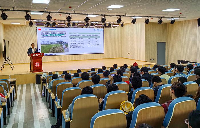 交流座談會(huì)上,直管部主任工程師從項(xiàng)目規(guī)劃藍(lán)圖、設(shè)計(jì)理念、室外綠化景觀設(shè)計(jì),到施工過(guò)程中攻克的技術(shù)難題,再到校園風(fēng)貌最終效果,詳細(xì)介紹項(xiàng)目整體情況,為前來(lái)參觀的農(nóng)大師生展示了項(xiàng)目建設(shè)每一處細(xì)節(jié)。在介紹過(guò)程中,主任工程師還特別強(qiáng)調(diào)校園建筑在有限的空間布局、功能分區(qū)上如何滿足現(xiàn)代化教學(xué)需求,以及本項(xiàng)目在綠色環(huán)保、可持續(xù)發(fā)展方面的創(chuàng)新舉措,引起了師生的濃厚興趣。